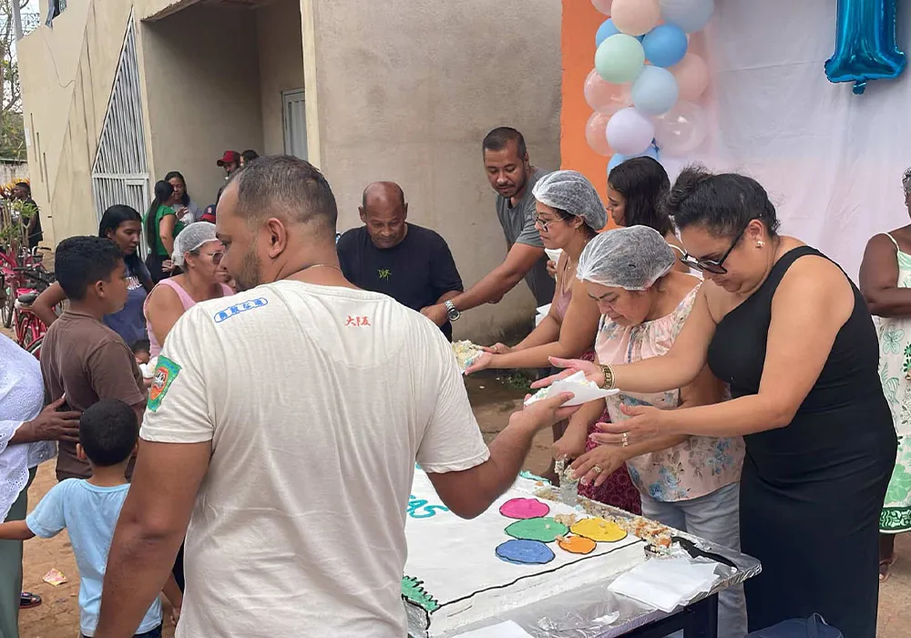 “Em 2006, fiz um bolo confeitado e comecei a repartir para as crianças que saíam da igreja e passavam pela praça. A cada uma, eu entregava um pedaço de bolo e um copo de refrigerante. Foi o começo de tudo.”
